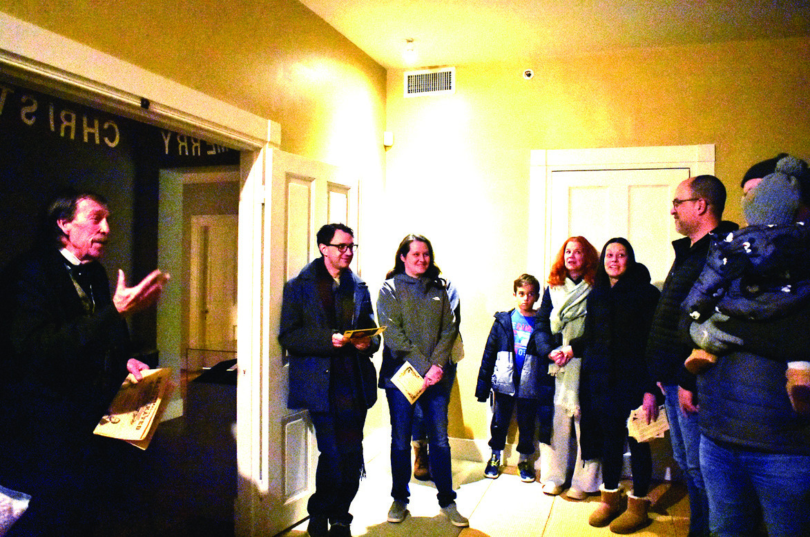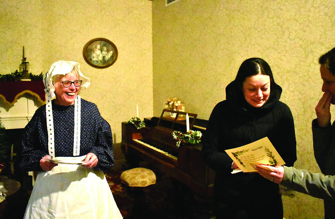 Visitors were invited to step back in time at the Jackson House this past Friday for an antebellum Christmas during the annual “Christmas at the Jacksons’” event. AT TOPLEFT, Mark Bower welcomes a group to Major Jackson’s study. AT TOP RIGHT, In the Jacksons’ bedroom, Tamara Teaff prepares for a holiday party. AT BOTTOM LEFT, Wanda Brown speaks to visitors while Nancy Hull shares mini mincemeat pies with the guests in the dining room. AT BOTTOM RIGHT, Debbie Levonick has a laugh with the visitors in the Jackson’s parlor. (Joann Ware photos)