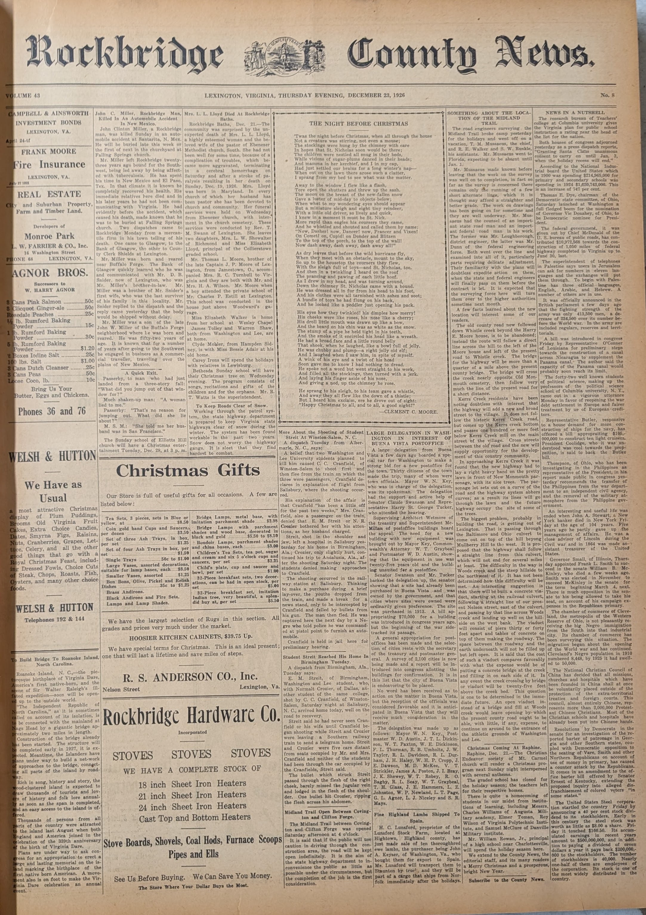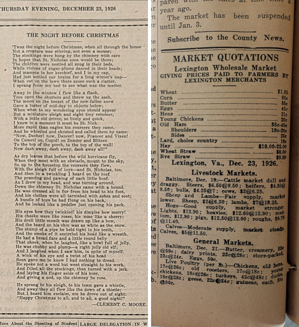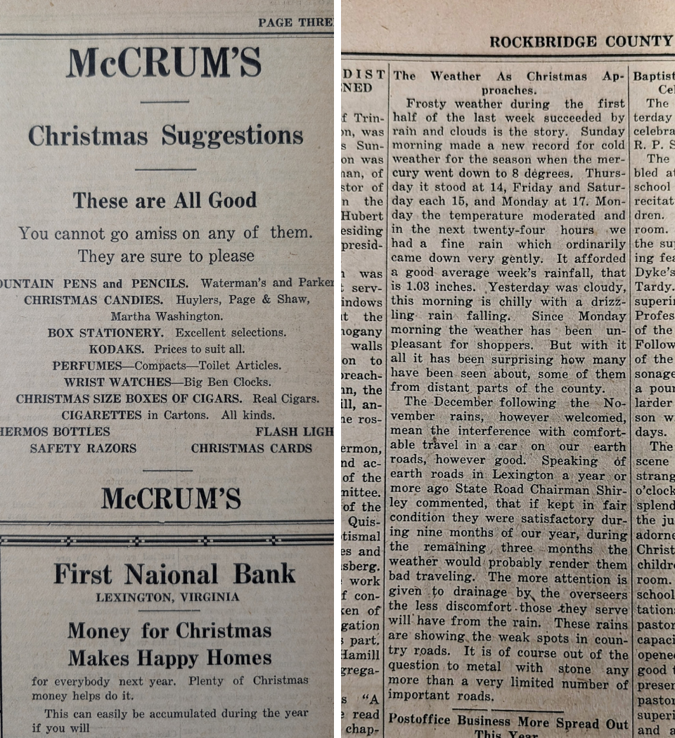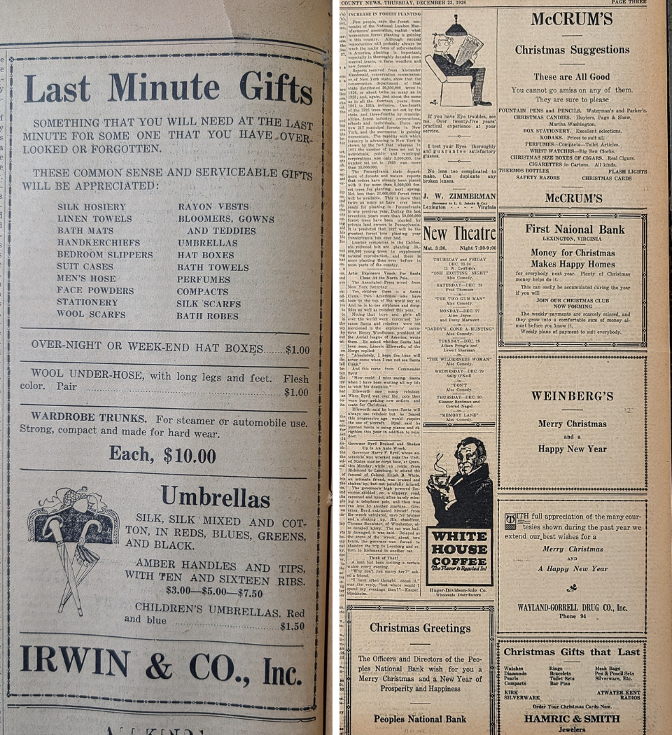 Included in this issue of Flashback Friday, from a December issue of The Rockbridge County News in 1925, are many excerpts and ads for the Christmas season.