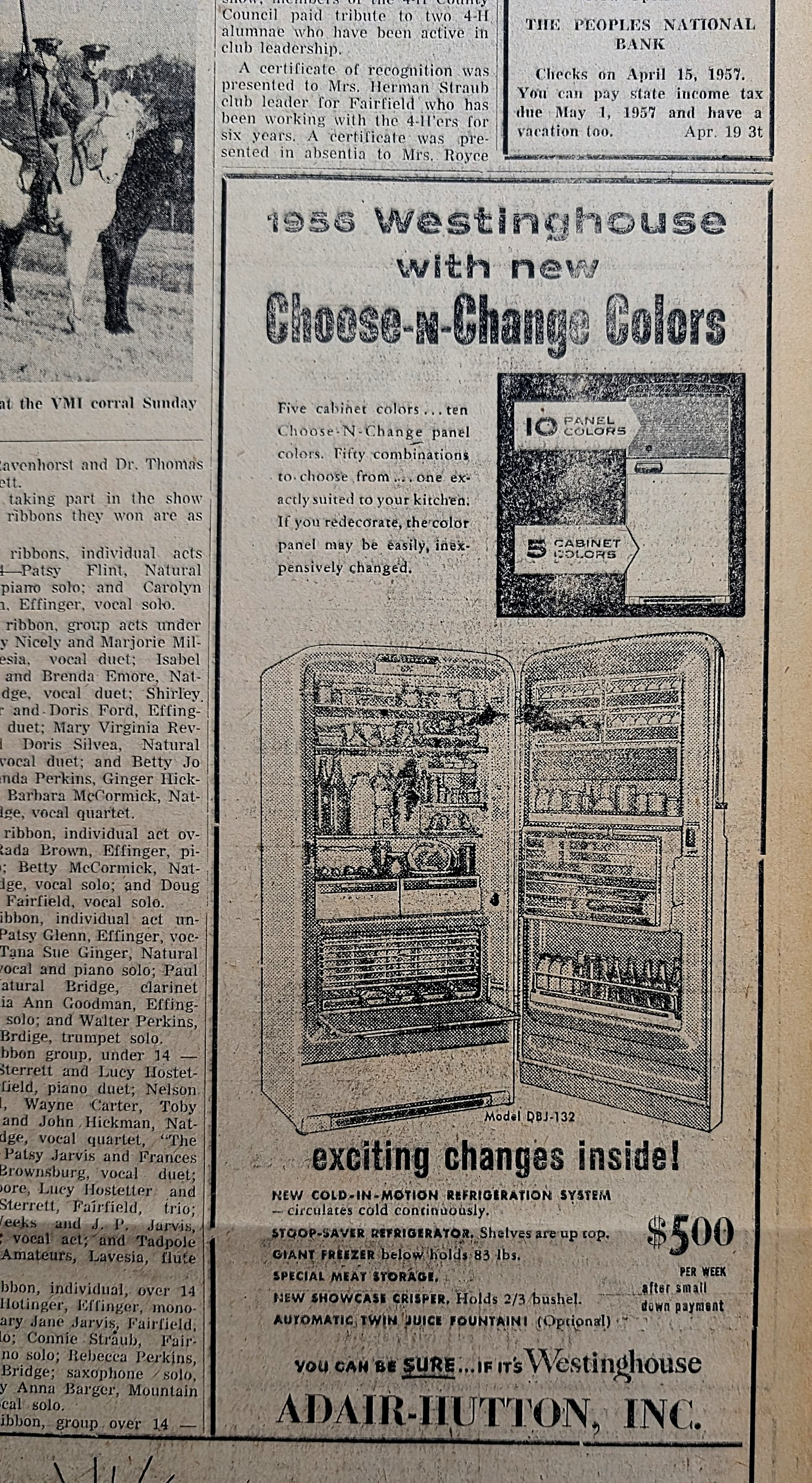 When news in slow, there tends to be more ads in the newspaper. Although there are still stories to report, many from the spring of 1956 are about committees making executive decisions.