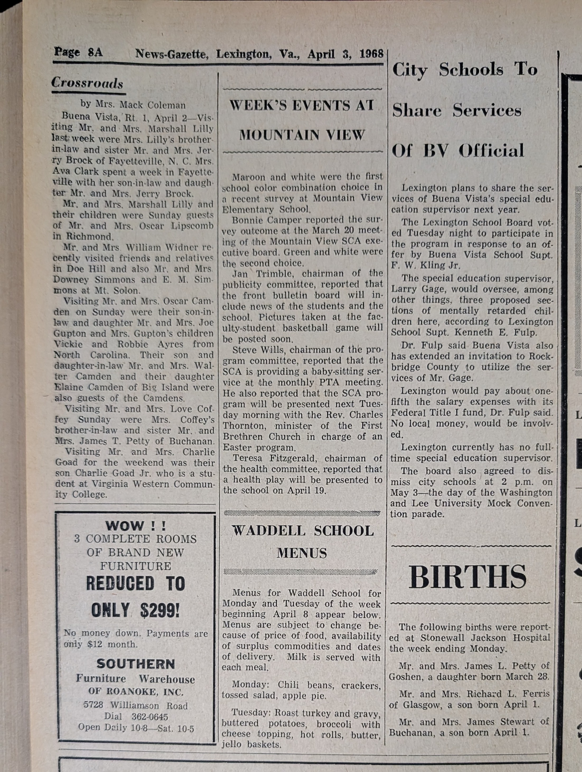 Also included are some editorials and a look into elementary nutrition during the 1960s with the school menus for Waddell and Ann Smith school.