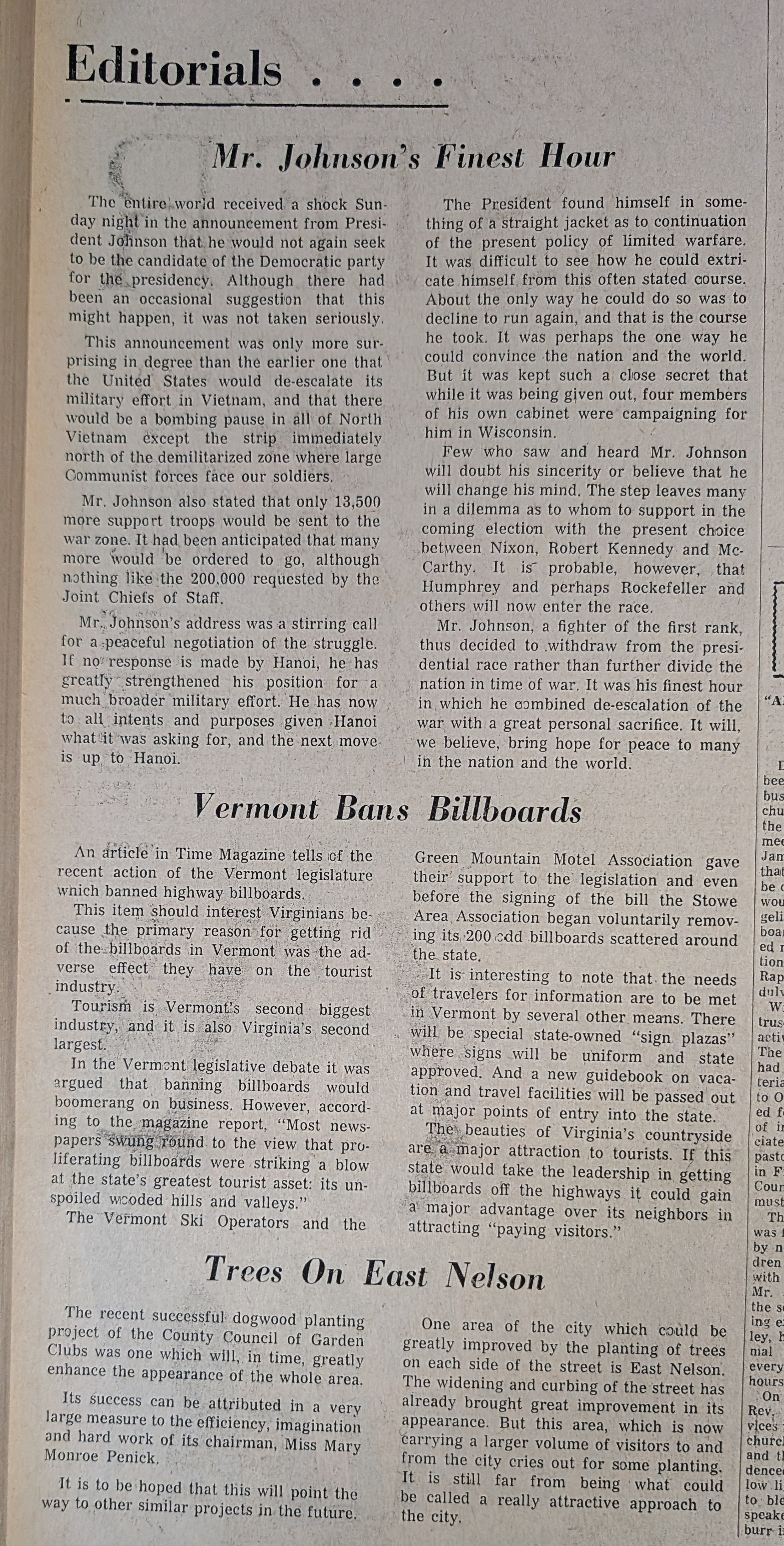 This week, let's go to the headlines of The News-Gazette the day before the assassination of Martin Luther King Jr. - April 3rd, 1968.