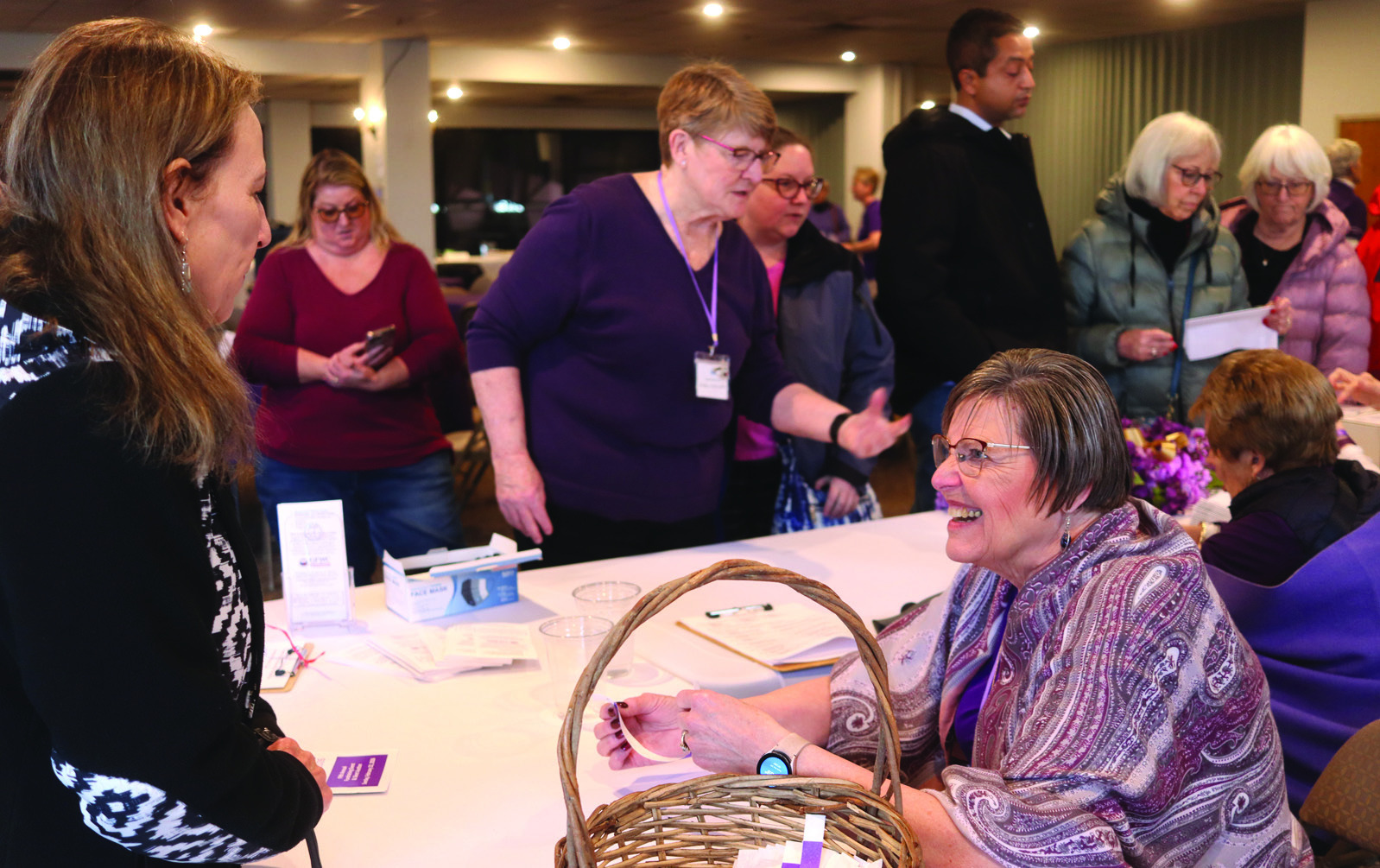 Jan Lowry (foreground) helps check in those attending the Just Desserts event at the Virginia Horse Center.