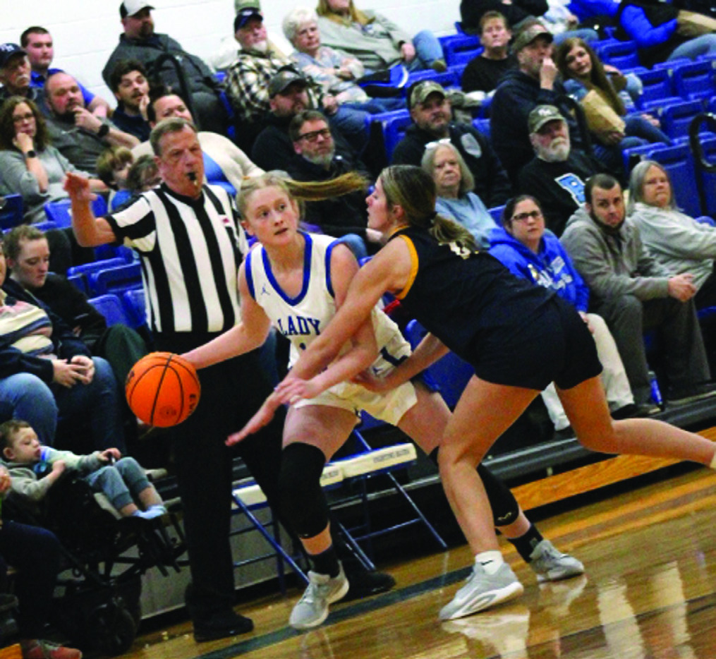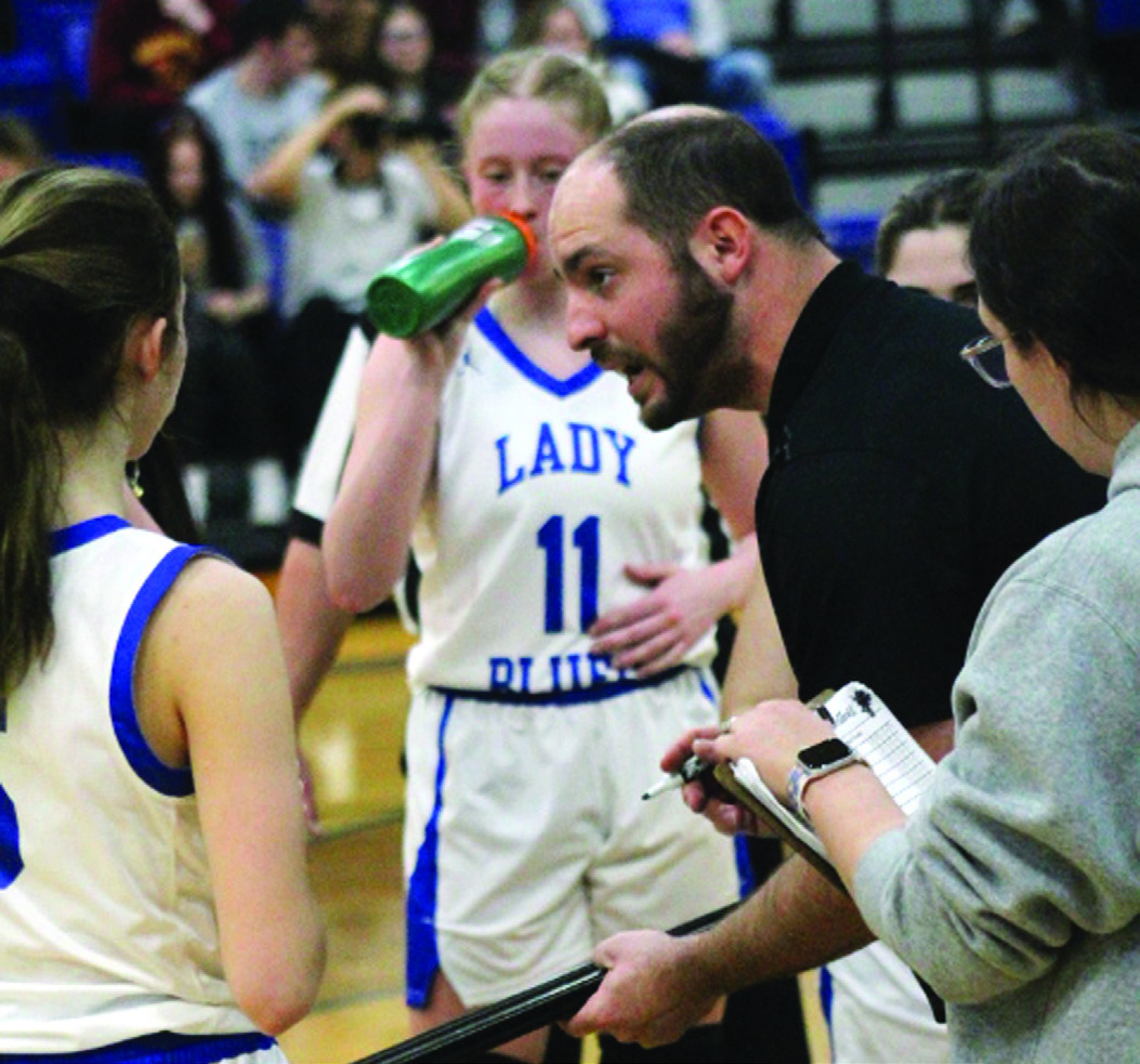 The Blues (10-13), the second seed from the Pioneer District, kept it close early in the contest despite turning the ball over on six of their first seven possessions, trailing just 8-4 after the first quarter, and they tied the game at 8-8 with the first two buckets of the second stanza. Emory Slagle picked up a steal and an easy layup for the first; then Caroline Watts hit a turnaround jumper in the paint to knot the score with 5:16 remaining before intermission.