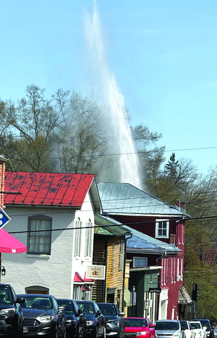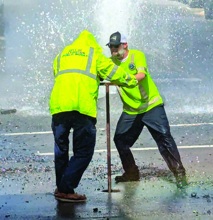 A water main break on at the intersection of Washington and Jefferson streets just before noon on Tuesday sent water flying high above the buildings and caused portions of West Washington and Jefferson streets to be closed for part of the day while crews worked to address the issue. Crews from the Lexington Department of Public Works were able to get the break fixedTuesday afternoon, reopening most of the closed streets, though the 100 block of West Washington Street remained closed to traffic at press time. The News-Gazette was unable to learn the cause of the break before press time. (photos by Scotty Dransfield, Gay Lea Goodbar and Joseph Haney)