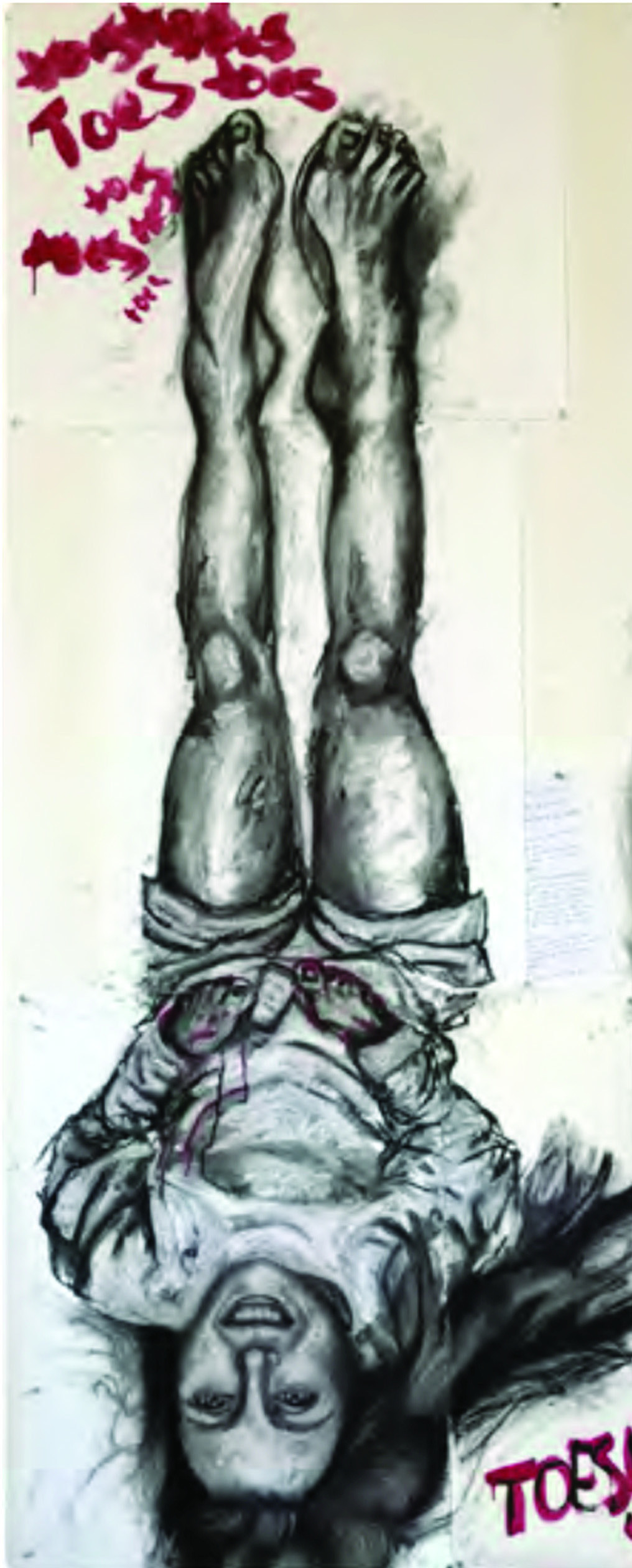 “TOES, 2026,” by Elka Prechel, charcoal and acrylic on paper.