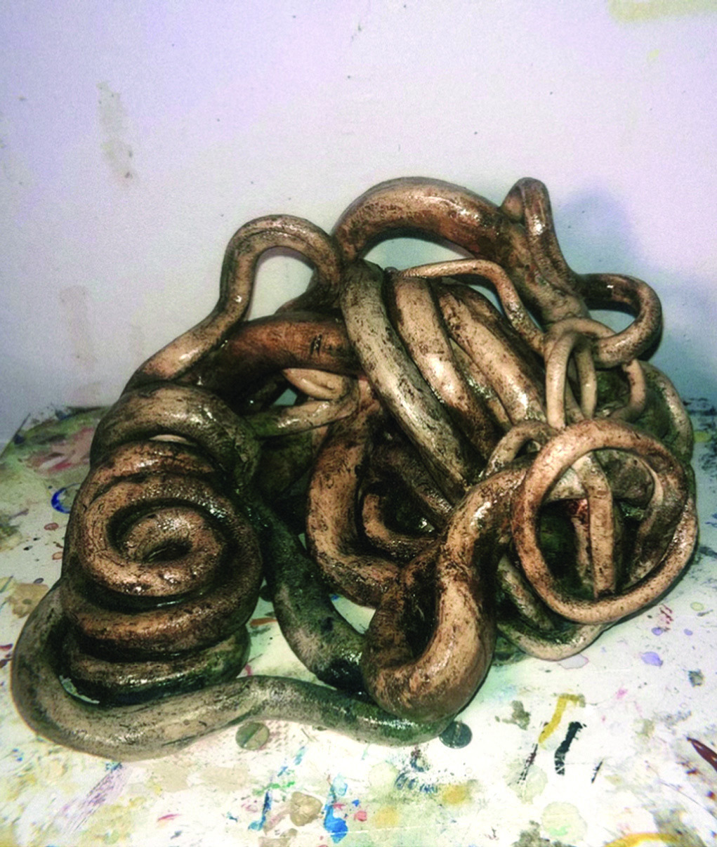 “PERKO KNOT in Three Dimensions, 2025,” by Teresa Yoon, ceramic, 12 x 8 x 8 inches.
