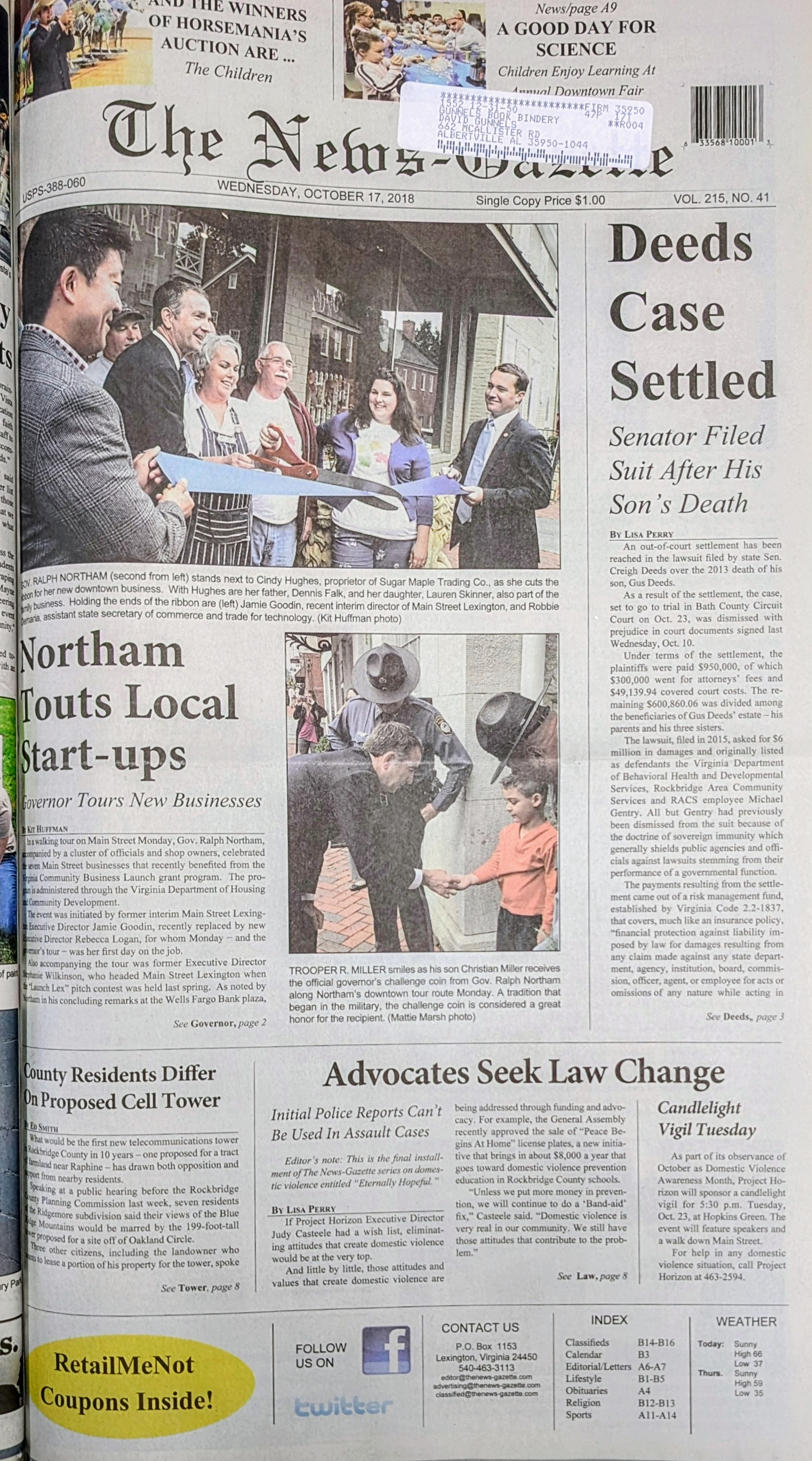 - Governor Northam went on a tour of downtown Lexington to see all the recent new businesses.