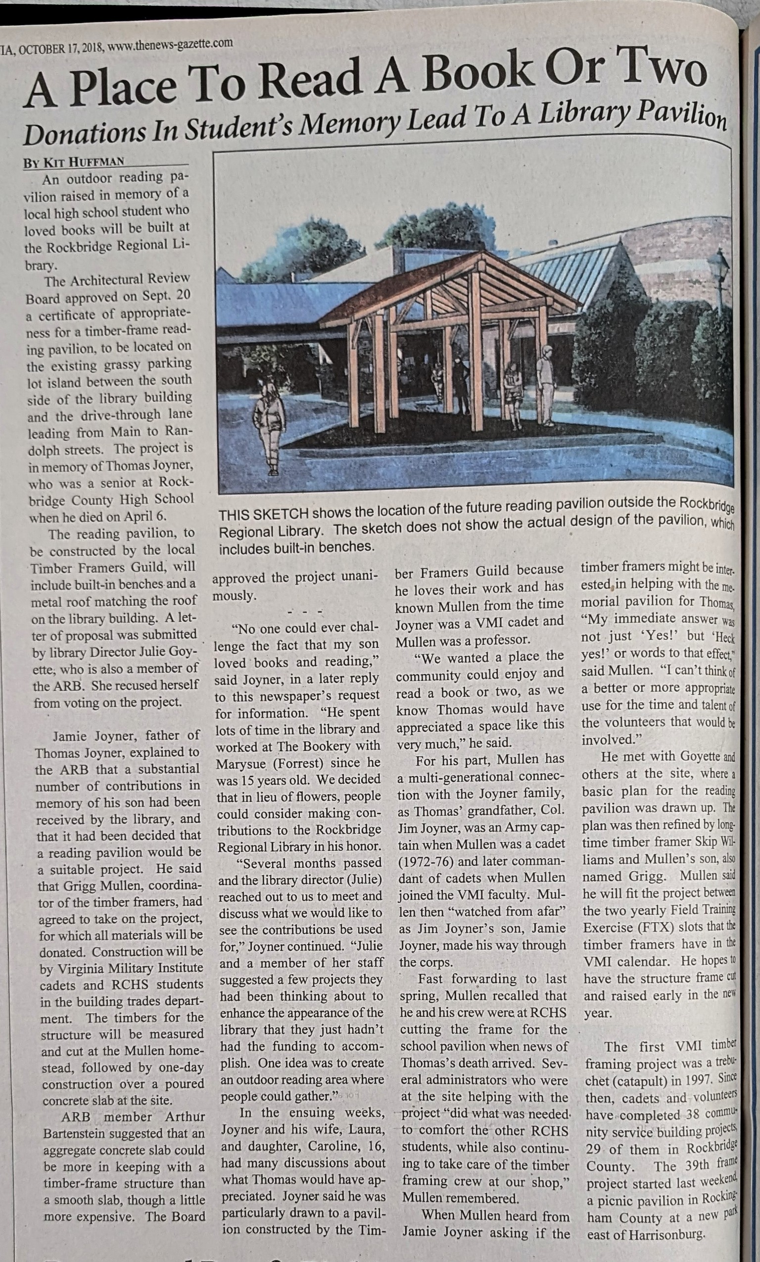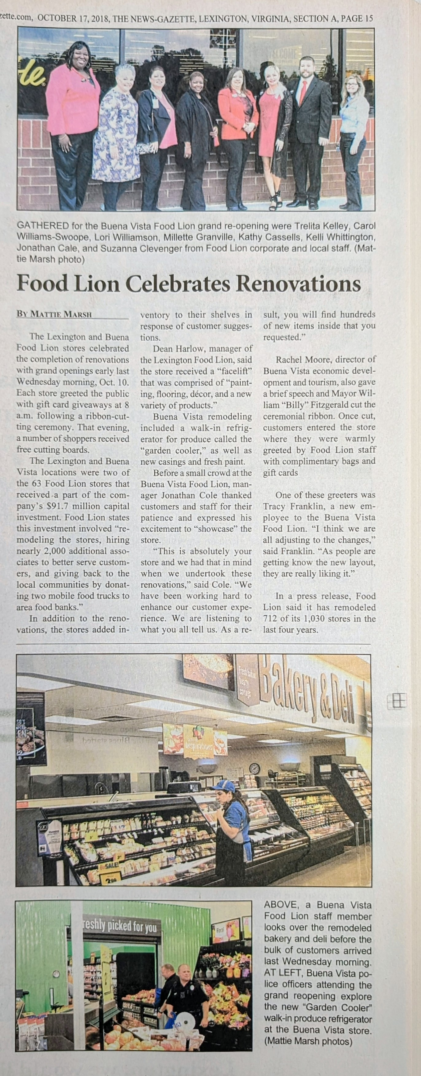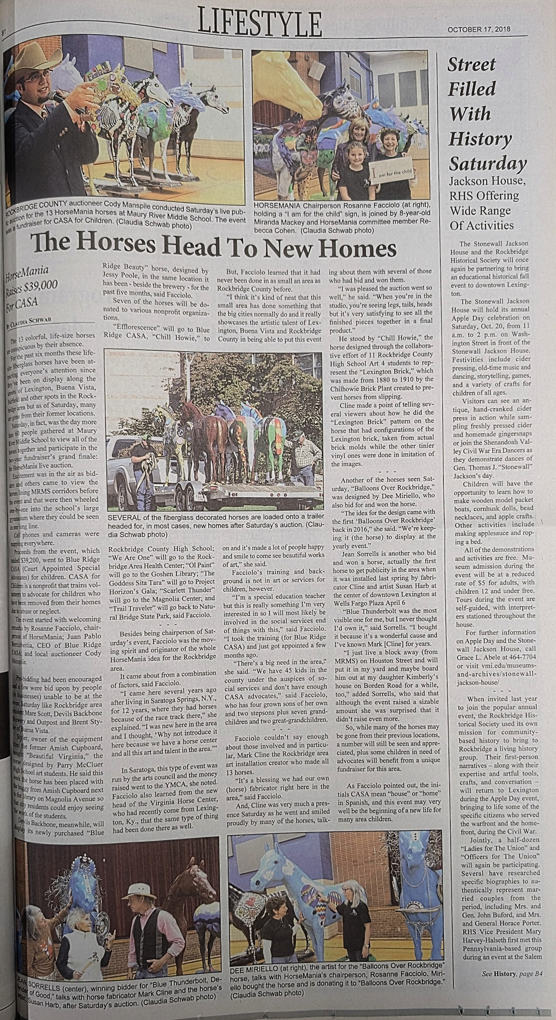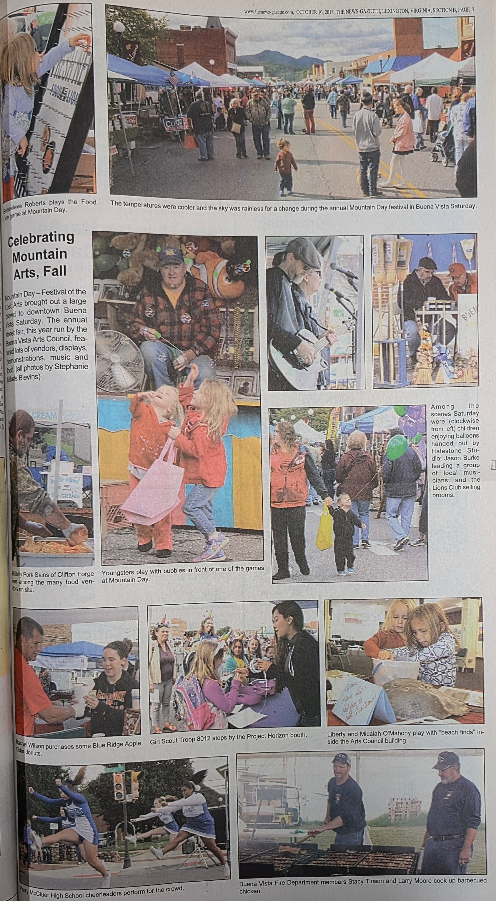 This issue of the paper is a bit unique in that it shows the introduction of a few community features that we see and use in our lives today. First, there's the story that Mattie Marsh wrote about the Buena Vista Food Lion remodel. People who don't shop at that location can still walk downtown and see the new business that opened in 2018. The timber frame reading area is standing strong at the Lexington library and there have been more timber framed structures assembled in our area. The painted life-size horses can be seen around the community, from Buena Vista to Fairfield, and we always look forward to the Mountain Day festival in October!