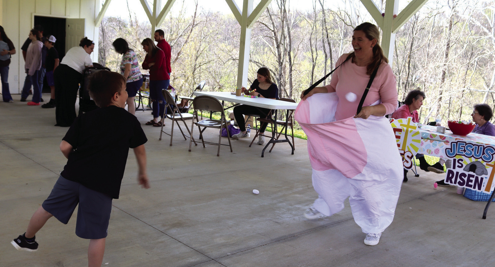 Egg hunts, crafts and face painting were all a part of the fun at the annual Effinger community Easter egg hunt on Saturday, held at the pavilion on the grounds of the Collierstown Baptist Church. Local churches sponsored the event, and the Effinger Ruritans invited the Easter Bunny, who was photographed with the children. (Stephanie Mikels Blevins photos)