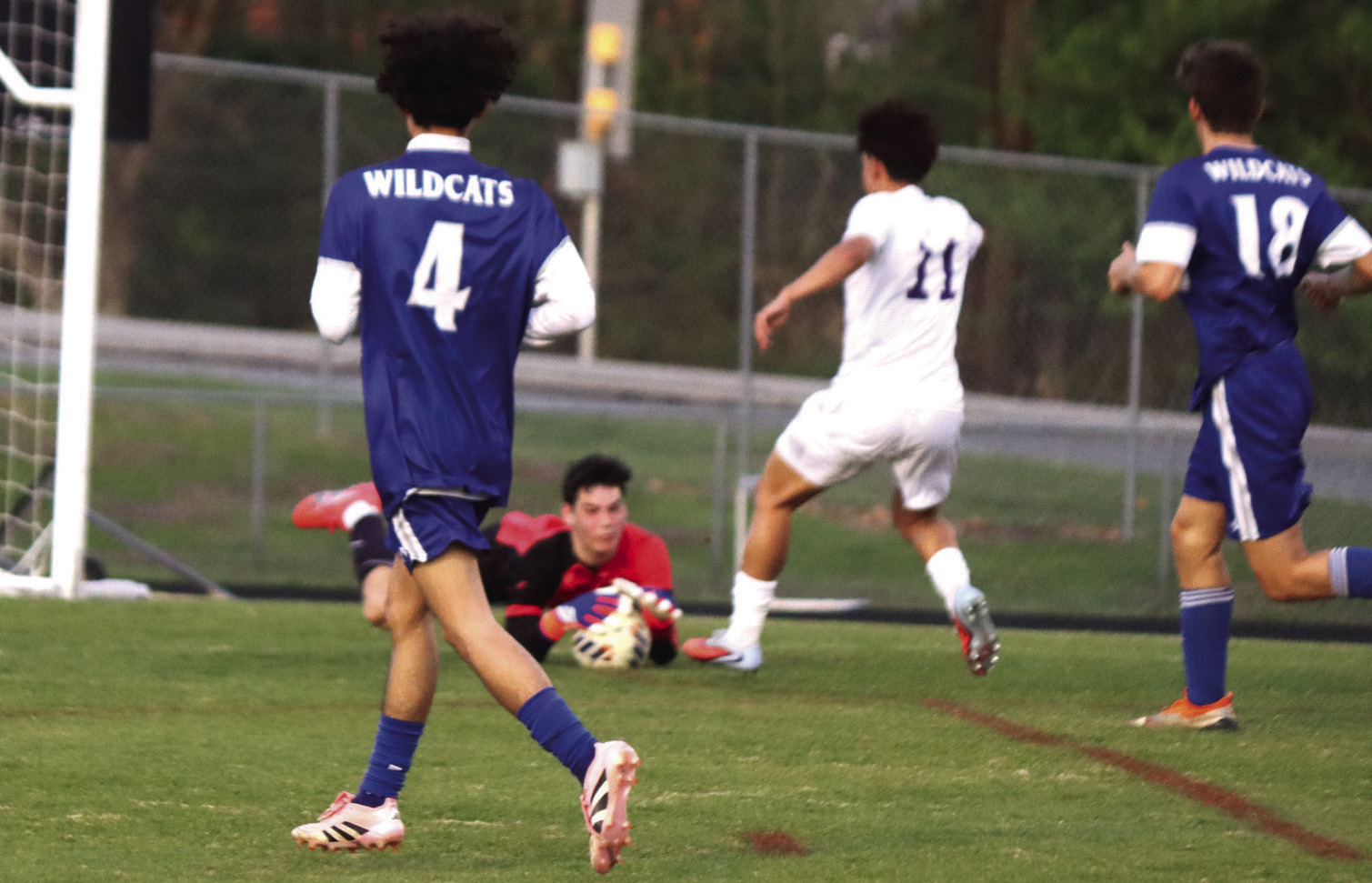 The Wildcats dominated possession in the first 15 minutes. About 10 minutes into the game, RC’s Charlie Cosgriff fired a shot, and Fox collected the rebound and put the ball in the goal to give the Wildcats a 1-0 lead.