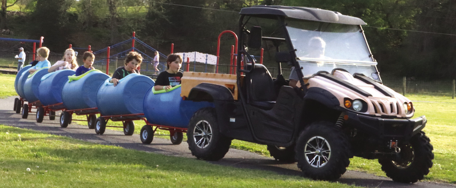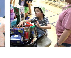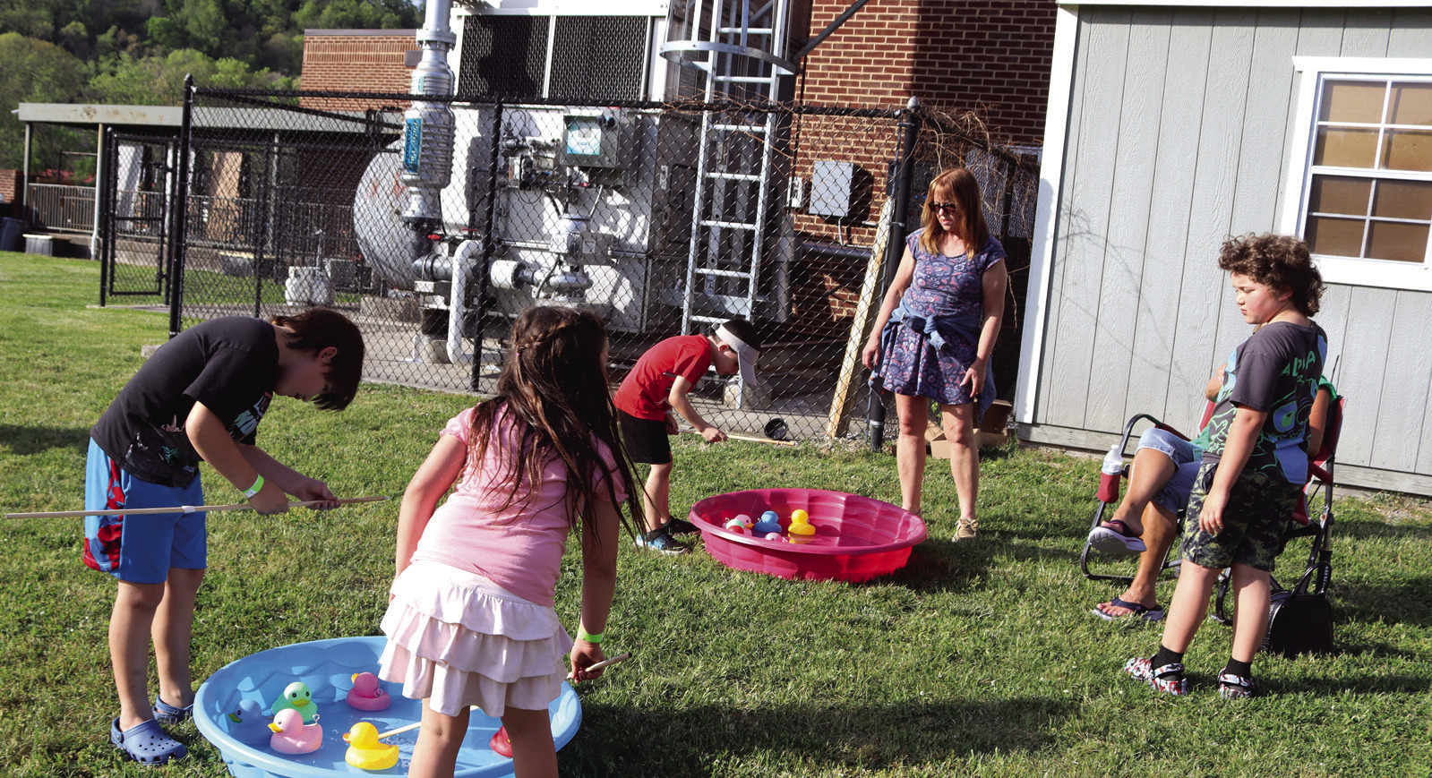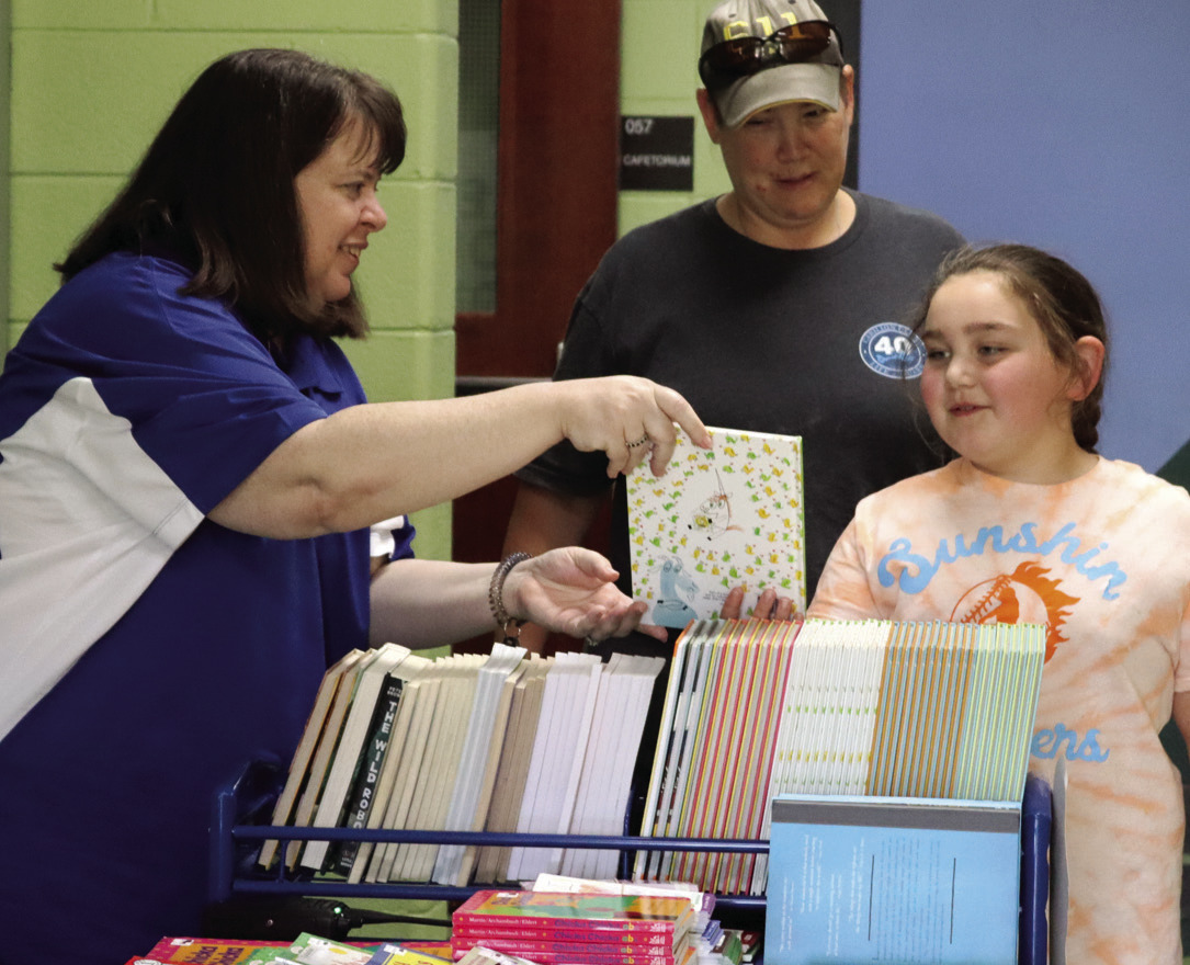 Mountain View Elementary School’s Spring Fling last Friday, a fundraiser for playground equipment, featured a wide range of activities. Scenes included (above) Meg Peters handing out a cake during the cakewalk; (at left) students playing a fishing game; (below) students enjoying a barrel train ride; (bottom left) Dr. Jennifer Floyd helping a student pick out a free book; and (bottom right) a student checking out raffle items. (Stephanie Mikels Blevins photos)
