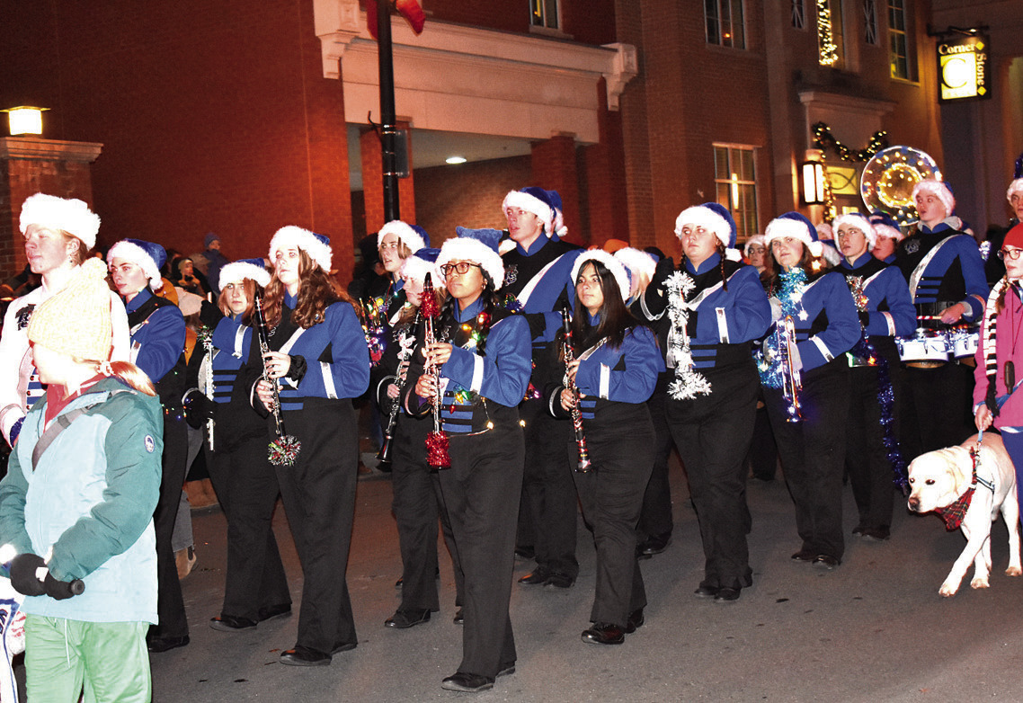 Those who braved the chill this past Friday night were witnesses to a pretty spectacular Christmas parade in downtown Lexington. There were 78 entries in this year’s parade, but counting individual vehicles, that number was closer to 100. Included in the parade were floats from Faith Mountain Baptist Church (above) and the Shenandoah Ballet (below right). The marching bands from Rockbridge County High School (at left) and Lylburn Downing Middle School were in fine form despite the frigid weather. (Joann Ware photos)
